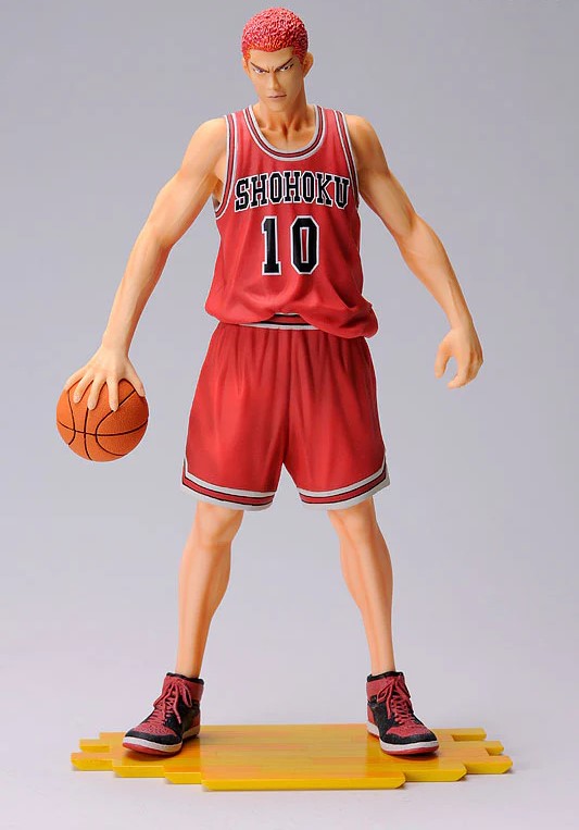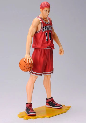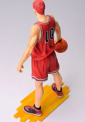 Cada detalle del modelado y pintura tienen la mas alta calidad, desde su uniforme. Con el número 10 en referencia a los Chicago Bulls, hasta ese rojo vibrante de su llamativo peinado como jugador. La base, en acabado ABS, simula el suelo de una cancha de baloncesto así mismo está diseñada para conectarse con otras figuras de la línea permitiendo armar un diorama con el resto del equipo Shohoku.