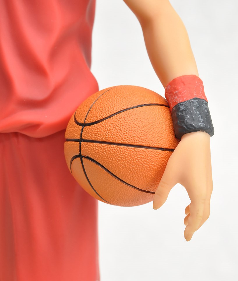 El esculpido destaca por su fidelidad visual al personaje, el detalle en las muñequeras, el pendiente en la oreja izquierda, la textura en sus tenis de baloncesto, todo ha sido meticulosamente esculpido bajo la supervisión directa de Takehiko Inoue.